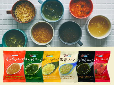 美味しいスープは、美味しい素材から。 生産者にまでこだわった国産良質素材のスープです。 厳選した食材だからこそできる、 自然の美味しさ、力強さ、素材の魅力を活かし、 熱をかけないフリーズドライ製法で蒸発させました。 保存がきくうえに、お湯を注げば いつでも作り立ての味を お召し上がりいただけます。 |