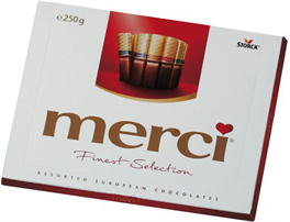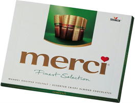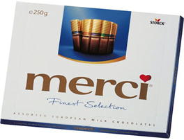 高品質のチョコレート、厳選された材料から作られ、金色に個包装されています。 これがmerci が1965年の発売以来人々の心に刻まれた経緯です。 非常に特別なお礼を伝えるギフトとしてmerci が選ばれるのも不思議ではありません。ありがとうはmerci という意味です。 あなたの存在に、merci |